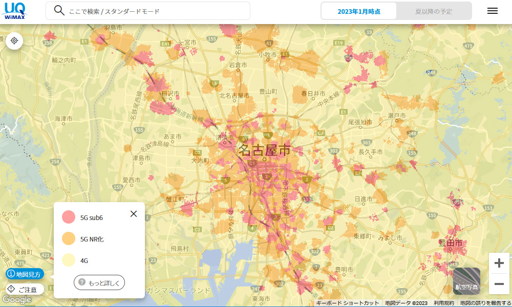 一部のエリアでは、WiMAXの独自網に加え、5G回線を使用しています。