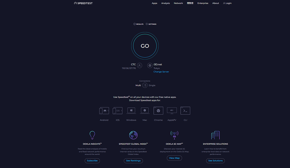 まず、「SPEEDTEST」にアクセスします。